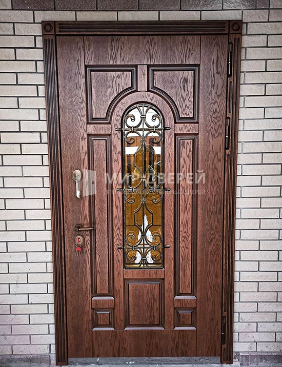 Изготавливаем входные двери в Куровском для квартиры и дома с порошковым напылением, ламинатом, 3D панелями, массивом дуба, решетчатые, а также с зеркалом и ковкой.
