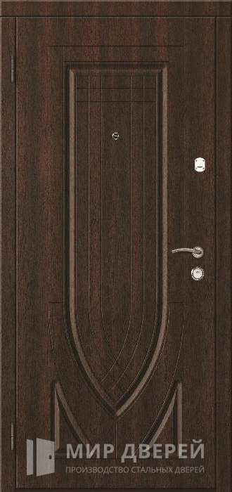 Эта входная железная дверь с отделкой из МДФ, представленная в цветах чёрный, тёмный, венге и коричневый, идеально подходит для установки в частных домах, квартирах и офисах. Особенностью двери является её прочная конструкция: коробка и полотно выполнены из профильной трубы 50х25 мм с листом металла толщиной 2 мм, обеспечивающим дополнительную безопасность. Ребра жёсткости из профильных труб 40х25 мм укрепляют структуру, а блокираторы усиливают защиту от взлома.